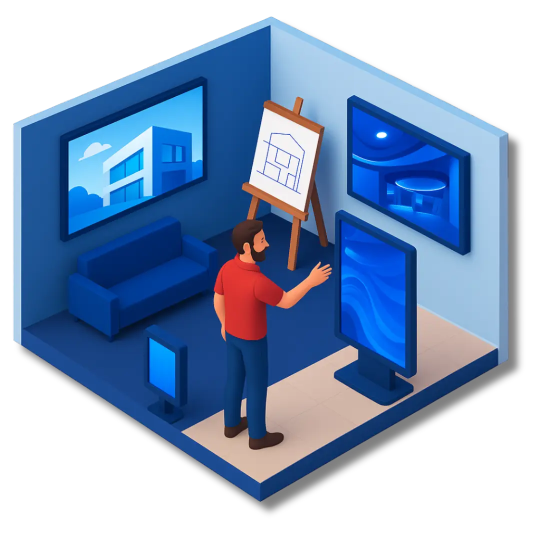 Our display solutions seamlessly integrate into your projects to enhance every space: custom LED screens, interactive surfaces, digital showcases, or immersive walls.